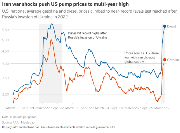 Trump sempre afirmou que o aumento nos preços da gasolina nos EUA seria passageiro. Mas, em entrevista ao programa “Sunday Briefing” da Fox News, ele disse que os preços poderiam permanecer altos até as eleições de meio de mandato em novembro.