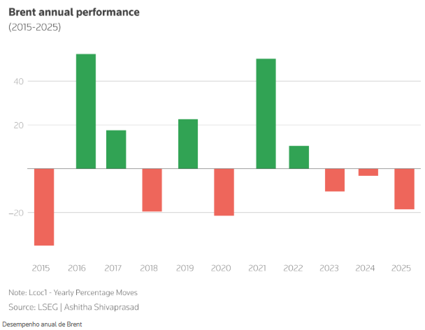 No entanto, analistas afirmaram que mudanças na política comercial dos EUA, a trajetória da demanda chinesa e os próximos passos da OPEP+ também influenciarão os preços este ano.
