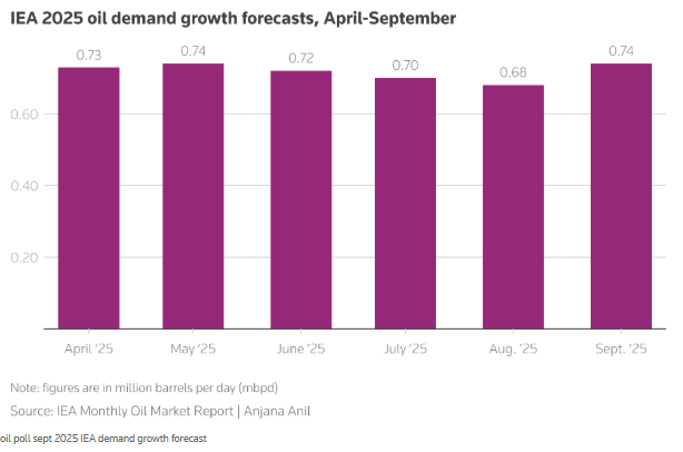A maioria dos analistas afirmou que esse foi o principal fator para o iminente superávit de oferta, juntamente com o aumento da produção de produtores não pertencentes à OPEP+. Isso, somado à expectativa de desaceleração da demanda devido ao fraco crescimento econômico desencadeado pelas tarifas comerciais, deverá aprofundar o superávit.