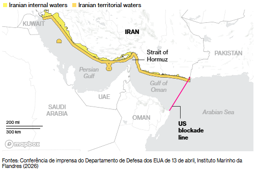 O bloqueio dos EUA continua a pressionar o Estreito de Ormuz.