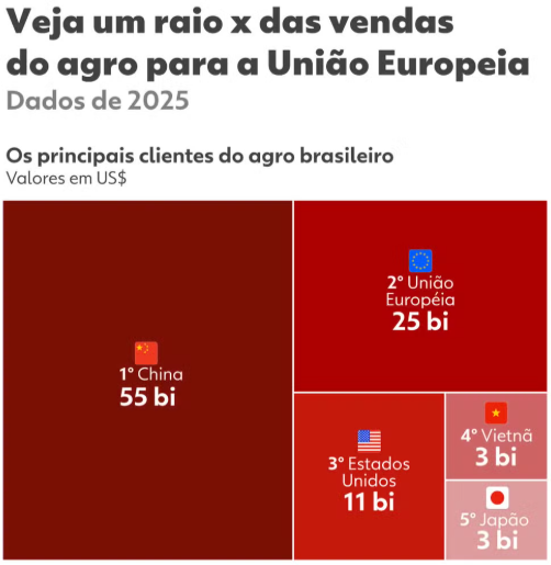 O agronegócio brasileiro deve ser um dos principais beneficiários do tratado, por ser um dos maiores produtores do mundo e já ter o bloco europeu como seu segundo maior mercado.