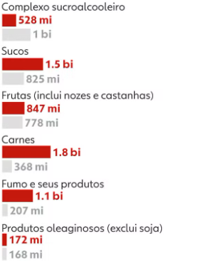 Veja abaixo a participação do setor nas exportações para a Europa.