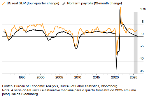 Os analistas preveem que o relatório de sexta-feira sobre o Produto Interno Bruto (PIB) mostrará uma expansão da economia de 2,7% em 2025, um ritmo sólido para qualquer padrão de um país desenvolvido. No entanto, o emprego praticamente não cresceu, e essa combinação está gerando comparações com a infame “recuperação sem empregos” do início dos anos 2000, que se seguiu ao estouro e colapso da bolha das empresas de tecnologia.